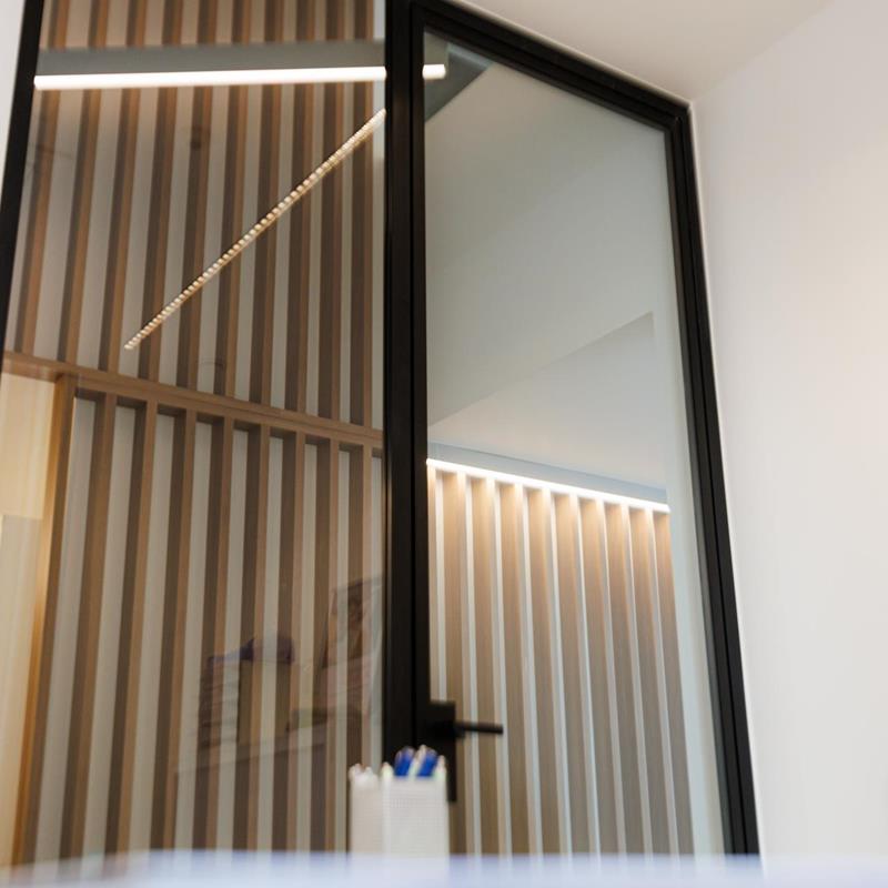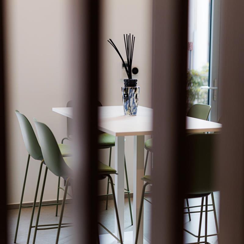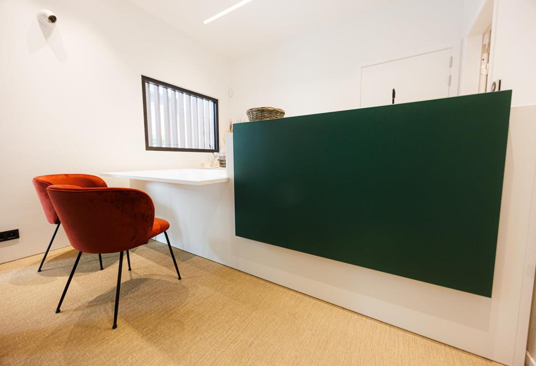 Ein zentrales Ziel war es, Empfang und Kundenführung zu verbessern. mit einem Raum, der warm, übersichtlich und professionell wirkt. Vertraulichkeit hatte dabei Priorität. ebenso wie Konzentration und Komfort für die Mitarbeitenden. Gleichzeitig sollte der Ausbau die visuelle Identität der Filiale stärken und sich an den Codes und Farben von Crélan orientieren.